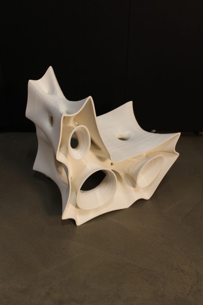 Responding to the challenge to design for additive manufacturing (AM) rather than 3D print a design, the fabrication method and materiality establish the design constraints that inform the geometry. We specialize in designing and optimizing a product together with its production system to reduce development time and cost, developing a generative design process for large scale additive manufacturing of thin shells or hollow structures like furnitures, lamps, interior walls.